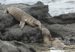 | Uplifting and lava flows issuing from the massive domed cone of Volcano La Cumbre have formed Fernandina the most volcanically active island in the Galapagos. Punta Espinosa is a jagged promontory of cracked and eroded lava, but the name could also refer to the hundreds of spiny marine iguanas that drape the rocks. Pristine nature under an active volcano and a highlight of any cruise. Flightless cormorants, Galapagos penguins, Galapagos sea lions, waders and the world's largest colony of marine iguanas thrive on the edge of a barren lava flow. Fine stands of mangroves support yellow warblers, Darwin finches, large billed flycatchers, Galapagos hawks and nesting brown pelicans. Snorkellers can watch green sea turtles and marine iguanas underwater and shallow lagoons attract sea turtles more sea lions, fish and rays visible to landlubbers. Fine examples of lava cactus and pahoehoe lava.